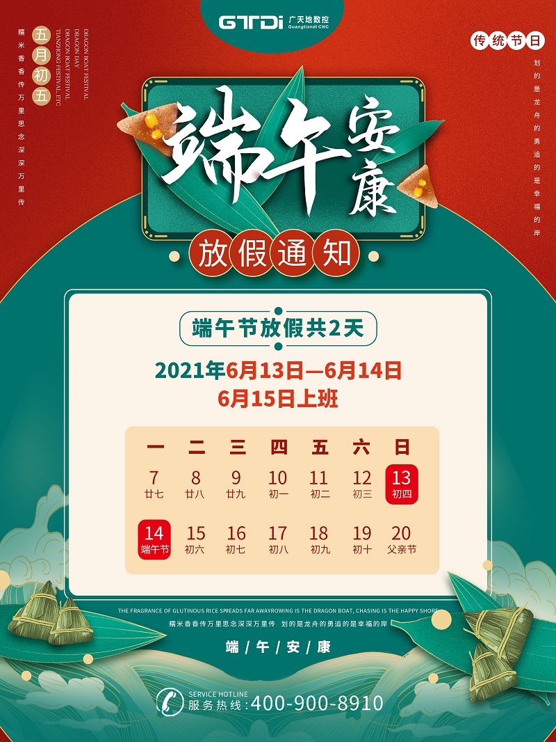 根据国务院办公厅《关于2021年部分节假日安排的通知》,并结合我司实际情况,bg电子数控2021年端午节放假安排如下: