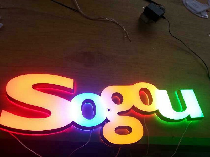 将水晶亚克力板用雕刻机雕刻成型,然后粘贴打磨,在排上LED光源,然后在字的边上做油漆处理即可。
