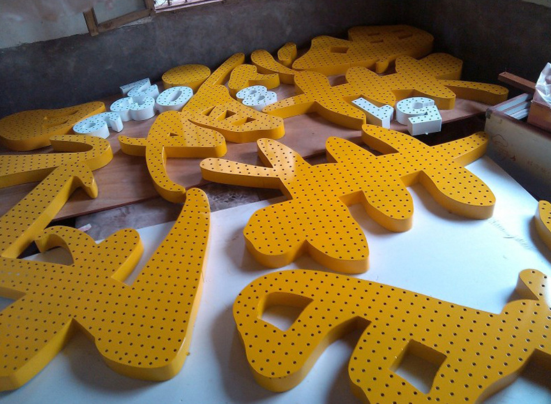 bg电子数控研发生产的迷你字雕刻机、光纤激光切割机、激光焊字机等,在制作不锈钢冲孔字工艺中都有用到。