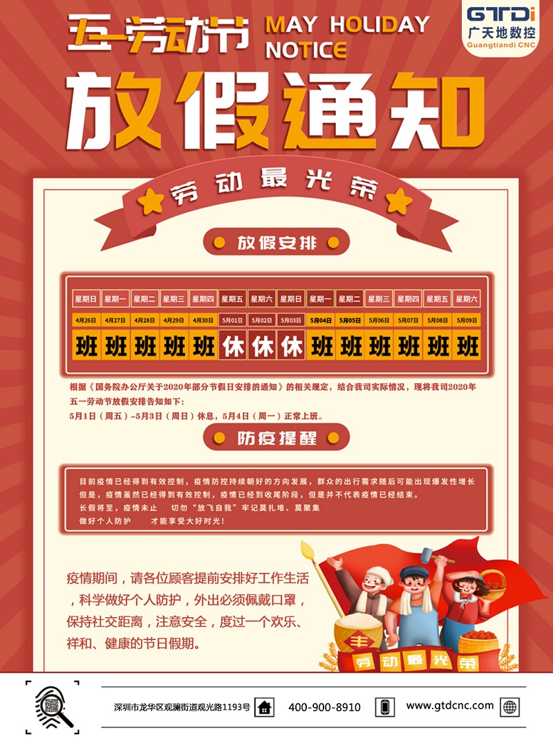 2020年bg电子数控公司五一劳动节放假时间安排