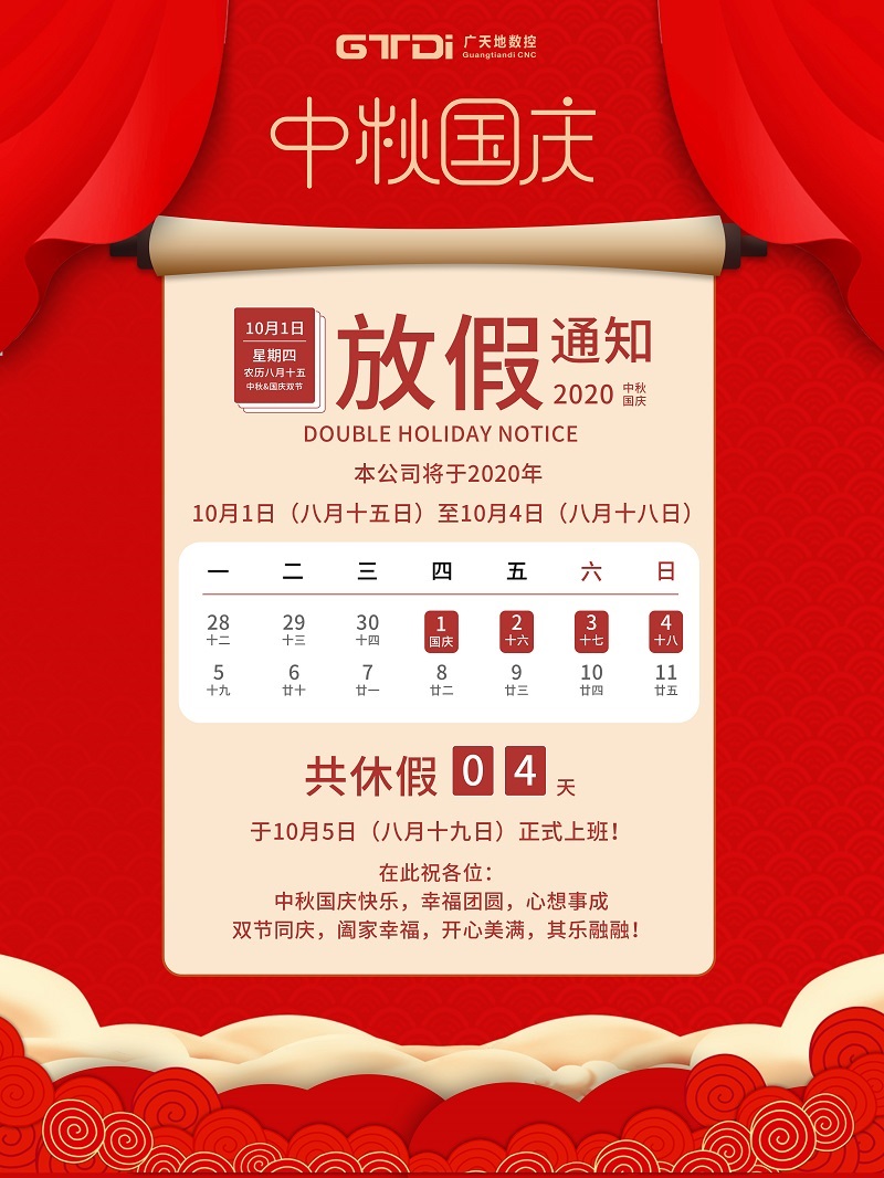 bg电子数控2020年国庆中秋节放假通知